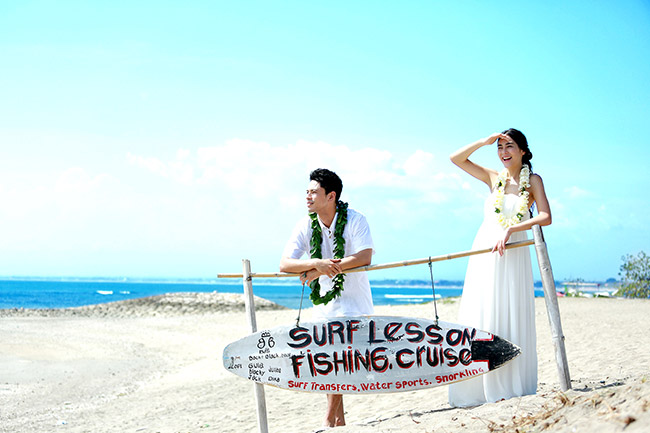 ドレススタイル撮影後、ビーチでの写真撮影となります。教会でのフォト+ビーチフォトとまさにバリ島のいいとこ取りフォトプランです。