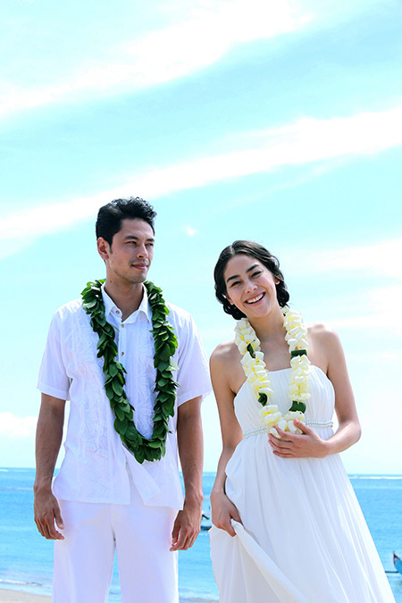 青い空と砂浜が輝くビーチでは自然に笑顔に。